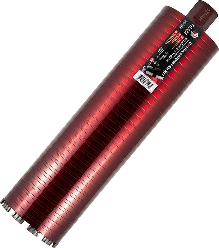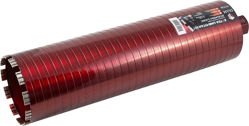 Алмазное сегментное сверло для сухого сверления с микроударом Diam Extra Line Titan Hit 132 мм (Диам Экстра Лайн Титан Хит 132 мм) предназначено для сухого алмазного бурения, в том числе и с микроударом, отверстий Ø 132 мм на сверлильных машинах / дрелях с микроударом и без микроудара в бетоне, железобетоне (армированном бетоне), бетонных строительных блоках, кирпиче, без подачи воды. Незаменимо в случаях, когда работы проходят в помещении, либо в ситуациях когда недопустимо загрязнение объекта, нет доступа к воде и иных ситуациях, предполагающих отсутствие охлаждения.