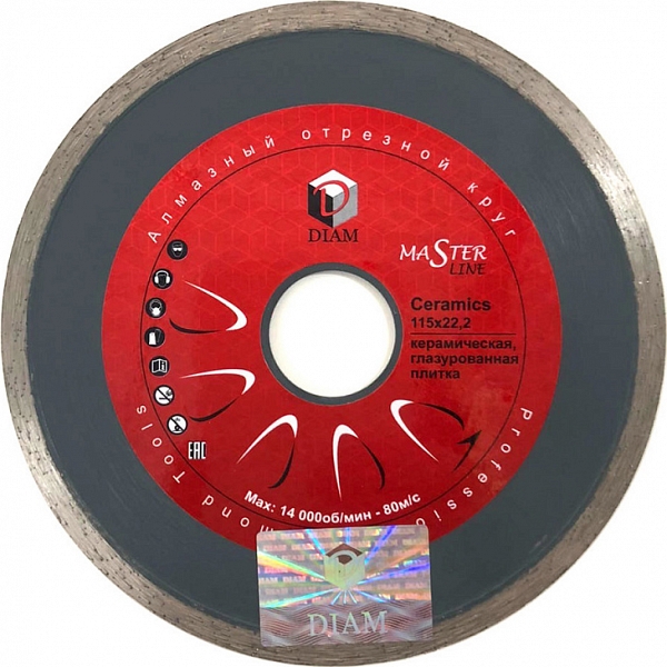 Алмазный отрезной круг Diam Master Line 1A1R Корона Ceramics 115 мм (Диам Мастер Лайн 1А1Р Корона Керамикс 115 мм) – универсальный алмазный диск со сплошной режущей кромкой для резки керамической и глазурованной плитки ручными углошлифовальными машинами (ушм, болгарками) без подачи воды при проведении отделочных работ.