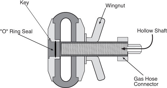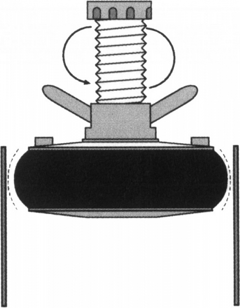 - Уплотнительное кольцо из резины между 2-мя блинами на штоке с резьбой и прижимом