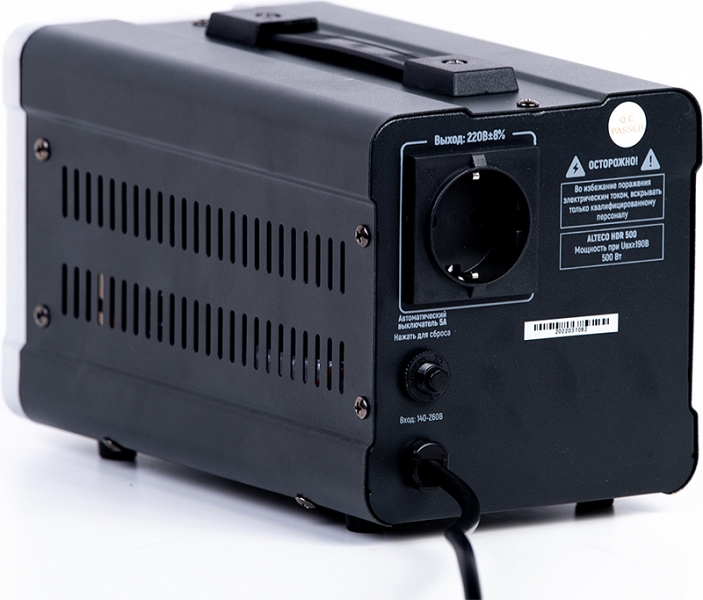 Автоматический cтабилизатор напряжения Alteco HDR 500 (Альтеко ХДР 500) предназначен для обеспечения стабильным напряжением подключенных к нему устройств. Широко используется в бытовых и промышленных сферах для защиты техники от аварийных скачков электроэнергии.
