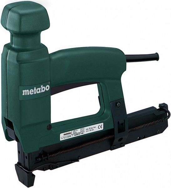 Модель снята с производства! Электростеплер Metabo Ta E 3030 (Метабо Та Е 3030) используется для работы с гвоздями, со скобами, скобами для вагонки и пазовыми захватами.