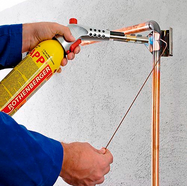 Преимущества газовой горелки для пайки с пьезоподжигом и баллончиком Rothenberger Super Fire 3 Hot Box: