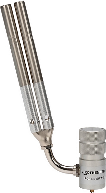 Газовая горелка на баллончик для пайки Rothenberger Rofire Swivel Pro Twin (Ротенбергер Рофайер Свифл Про Твин) – двойная ручная циклонная горелка для пайки труб Ø до 28 мм твердым припоем, Ø до 64 мм мягким припоем.