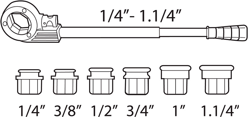 | 600000000 | Резьбонарезная трещотка | 1/4" – 1 1/4" | BSPT, NPT | R / L (Правая / Левая) |