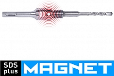Коронка по бетону для розеток Distar CACC-W T-Бетон Magnet SDS Plus 82 мм (Дистар ЦАЦЦ-В Т-Бетон Магнит СДС Плюс 82 мм) с магнитным переходником М16 / SDS Plus и твердосплавным центровочным сверлом – сверло алмазное сегментное для сверления глухих подрозеточных отверстий Ø 82 мм в стенах из кирпича, неармированного и слабоармированного бетона с применением перфоратора с патроном SDS Plus в безударном режиме и без применения охлаждающей жидкости.