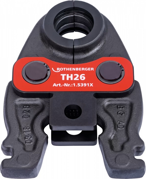 Пресс-клещи Rothenberger Compact TH26 (Ротенбергер Компакт ТХ26) в новом качестве материала и изготовления, ориентированные на различные системы производителей обжима пластиковых из сшитого полиэтилена (PE-X) и металлопластиковых (МПТ) труб Ø 26 мм. Предназначены для аккумуляторного гидравлического радиального пресса Rothenberger Romax Compact.