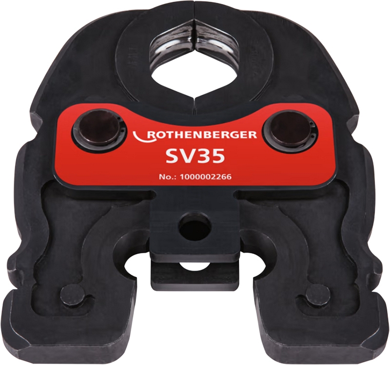 Пресс-клещи Rothenberger Standard SV35 (Ротенбергер Стандарт СВ35) проверенного качества, ориентированные на пресс-фитинговые и трубные системы обжима медных, нержавеющих стальных труб и труб из цветных металлов Ø 35 мм различных производителей. Предназначены для аккумуляторных и электрических гидравлических радиальных прессов Rothenberger Romax 4000 / 3000 AC / AC Eco.