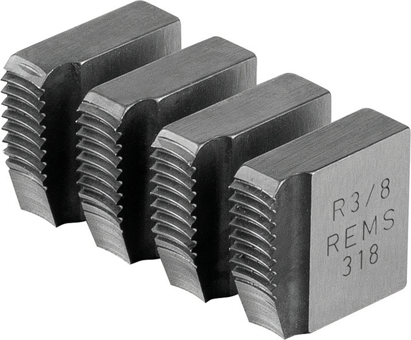 Резьбонарезные плашки Rems R 3/8" (Ремс Р 3/8") предназначены для нарезки правой трубной конической резьбы R (ISO 7-1, EN 10226 (DIN 2999, BSPT)) на стальных трубах Ø 3/8" с применением ручных и электрических резьбонарезных трубных клуппов Ева, Амиго, Амиго 2, Амиго 2 Компакт.