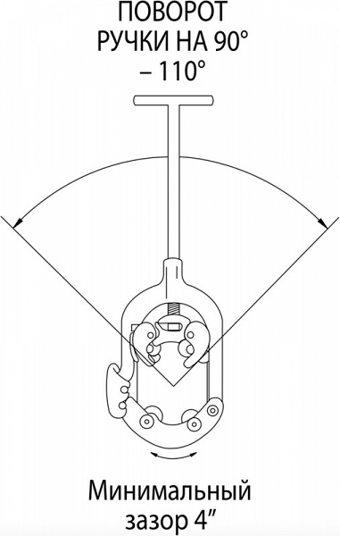 - Высокоэффективная резка с углом поворота ручки всего на 90° – 110°: четыре ролика легко режут трубы из литого и ковкого чугуна, при этом угол поворота ручки трубореза равен всего 90° – 110°