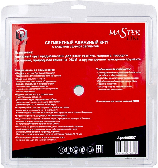 – С водяным охлаждением: предназначен для работы с водяным охлаждением, использование без подачи водяного охлаждения может привести к выходу из строя, за исключением, когда предназначен как для сухой, так и для мокрой резки - Корейские технологии: изготовлен по технологиям и под контролем ведущих производителей алмазного инструмента Южной Кореи, специально по заказу ГК Диам