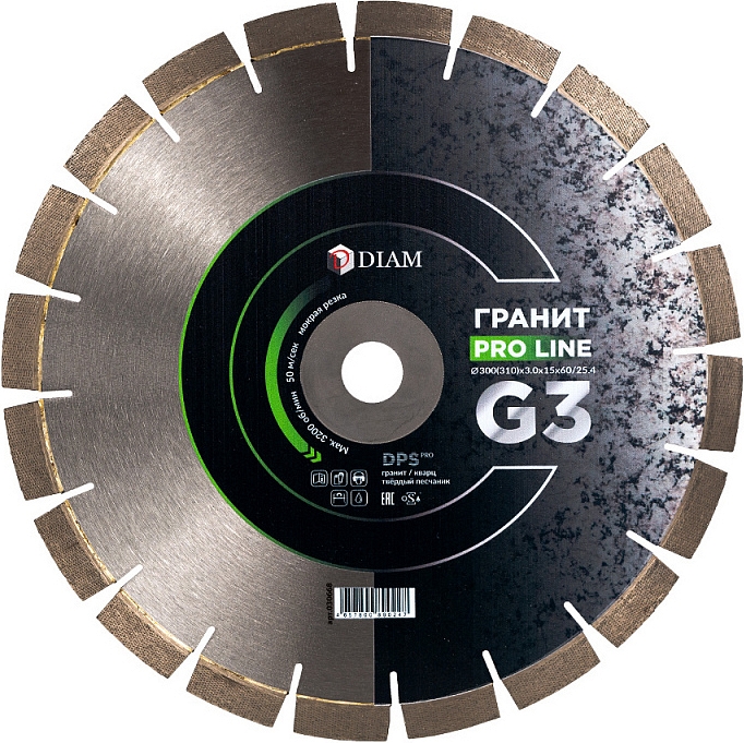 Цена и технические характеристики сегментного алмазного круга Diam Pro Line 1A1RSS G3 Гранит 300 (310) мм: