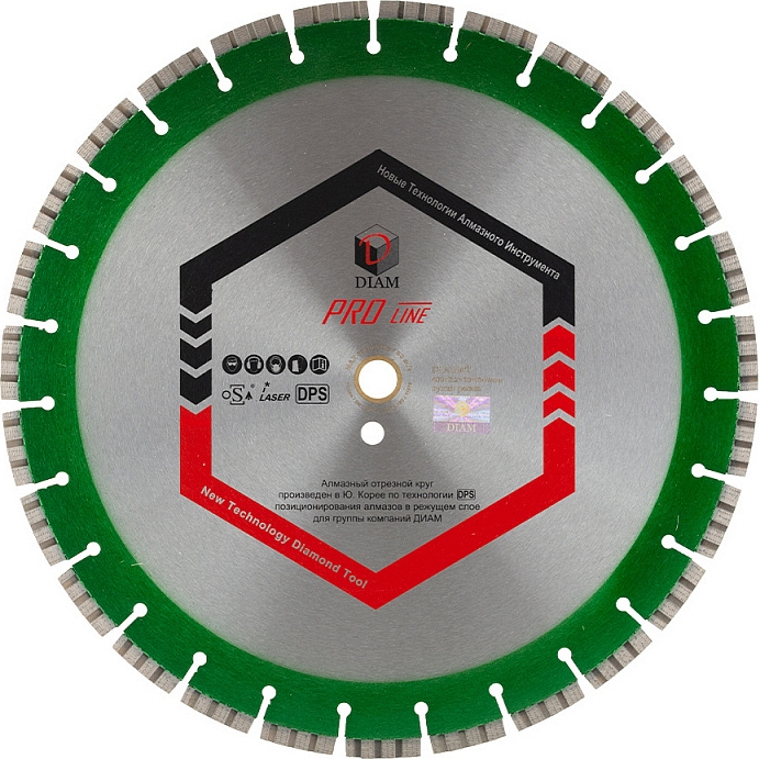 Сегментный алмазный круг Diam Pro Line 1A1RSS Turbo Laser G2 Гранит 400 мм (Диам Про Лайн 1А1РСС Турбо Лазер Г2 400 мм) – профессиональный алмазный отрезной диск, произведенный по технологии DPS – позиционирования алмазов в режущем слое, для сухой и мокрой резки гранита, кварца, твердых песчаников на бензорезах, электрических резчиках, камнерезных станках, стенорезных машинах, швонарезчиках, как с подачей воды, так и всухую.