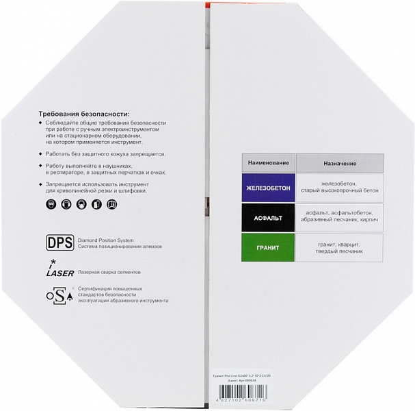 Преимущества сегментного алмазного круга Diam Pro Line 1A1RSS Turbo Laser G2 Гранит 400 мм: