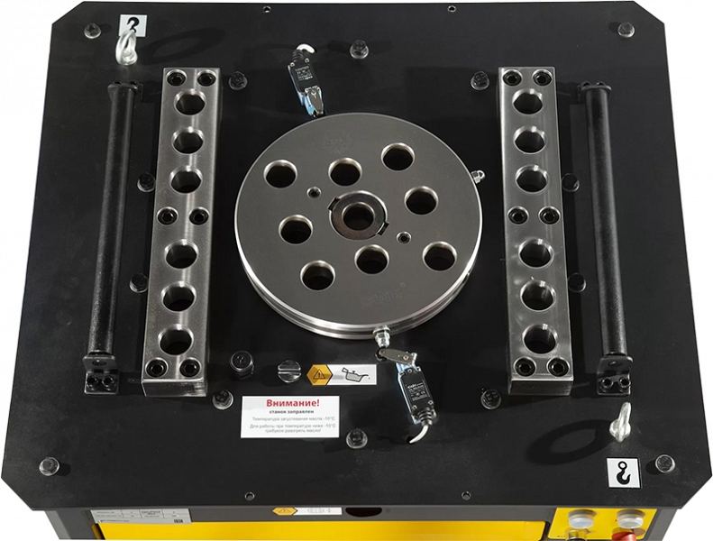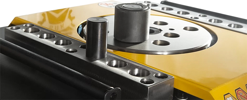 - 2 подвижные упорные рейки позволяют осуществлять более точную подгонку под обрабатываемые арматурные прутки и производить двойной гиб за один ход рабочего диска