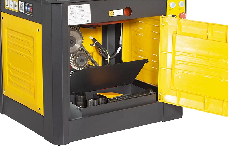 - Рабочие узлы защищены кожухом, который значительно продлевает ресурс концевиков, надежно защищая их от непредвиденного механического воздействия, при этом, для регулировки угла загиба демонтаж защитного кожуха не требуется: защитный кожух увеличивает ресурс работы концевых выключателей, боковые панели из сверхпрочного вида пластмассы "АБС-пластика"