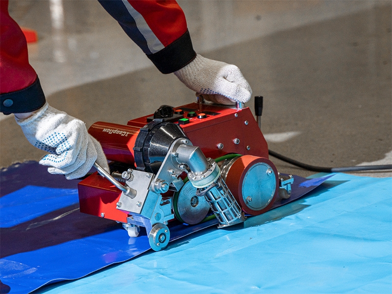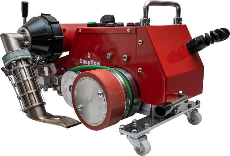 Сварочный автомат горячего воздуха СварПом СП51 30 мм (SvarPom SP51 30 mm) – автоматический сварочный аппарат горячего воздуха для эффективной сварки внахлест горячим воздухом технических ПВХ-тканей и полимерных пленок при производстве всевозможных тентовых и баннерных конструкций (укрывных тентов, автомобильных тентов, павильонов, укрывных пленок для сельского хозяйства и строительства, биотопов, бассейнов, промышленных завес, рекламных баннеров и т.д.).