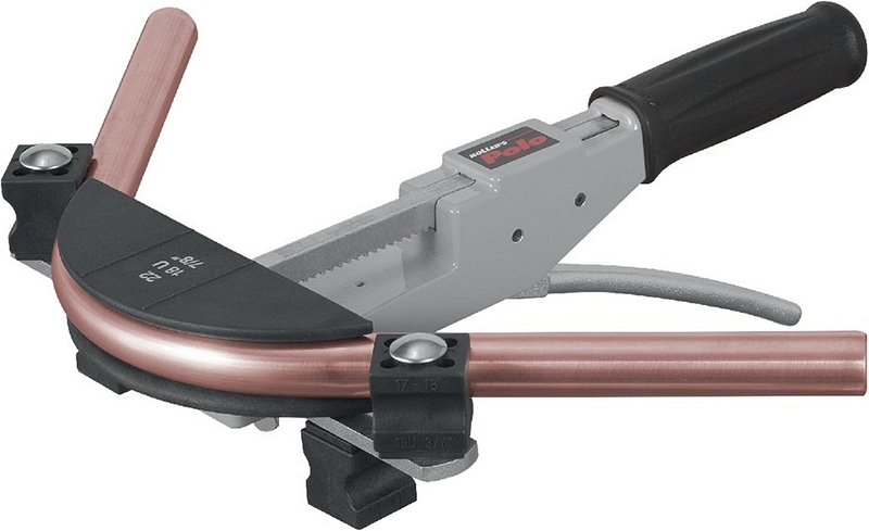 Трубогиб арбалетный ручной Roller Polo Set Allround 32 10-12-14-15-16-17-18-20-22-25/26-32 мм (Роллер Поло Сет Оллраунд 32 10-12-14-15-16-17-18-20-22-25/26-32 мм) – практичный, очень удобный, сверхлегкий трубогиб для работы одной рукой для легкой, простой и точной гибки мягких медных труб Ø 10 – 22 мм, 3/8" – 7/8", толщиной стенки до 1 мм; медных труб с мягкой оболочкой Ø 10 – 18 мм, 3/8" – 5/8", толщиной стенки до 1 мм; труб из углеродистой стали с мягким покрытием систем пресс-фитинга Ø 12 – 18 мм, толщиной стенки до 1,2 мм; труб из мягкой прецизионной стали Ø 10 – 18 мм, толщиной стенки до 1 мм; многослойных композитных труб Ø 14 – 32 мм; на угол до 90° при изготовлении колен и отводов на стройплощадках и в местах с ограниченным доступом.