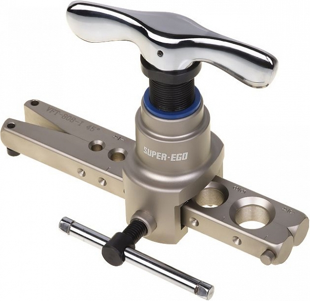 Универсальный эксцентриковый развальцовщик Super-Ego 1/4"-5/16"-3/8"-1/2"-5/8"-3/4" (Супер-Эго 1/4"-5/16"-3/8"-1/2"-5/8"-3/4") предназначен для развальцовки (изготовления гладких бортиков под 45°) медных, алюминиевых и латунных труб Ø 1/4", 5/16", 3/8", 1/2", 5/8", 3/4" при монтаже систем водоснабжения, газоснабжения, отопления, кондиционирования и в холодильной технике.
